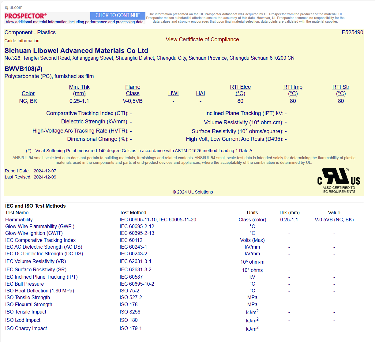 Non-PFAS聚碳酸酯阻燃薄膜-5VB